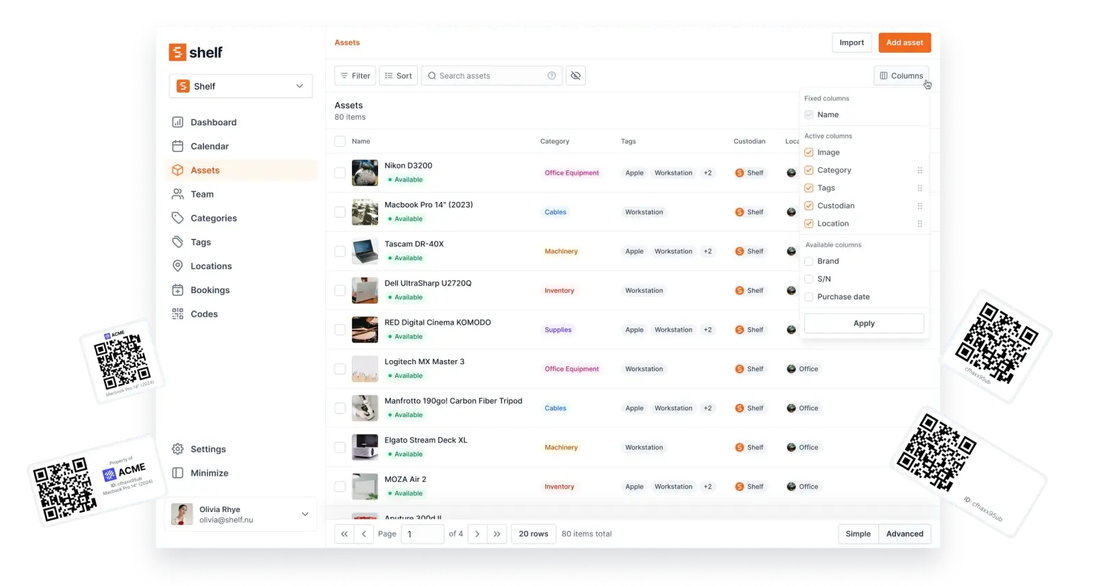 Stop wrestling with spreadsheets and per-user pricing. Shelf is the fast, open-source way to track gear, manage bookings, and prevent double-bookings.